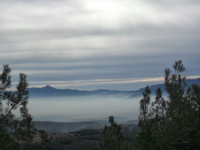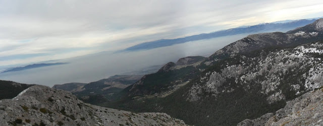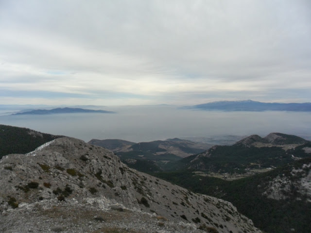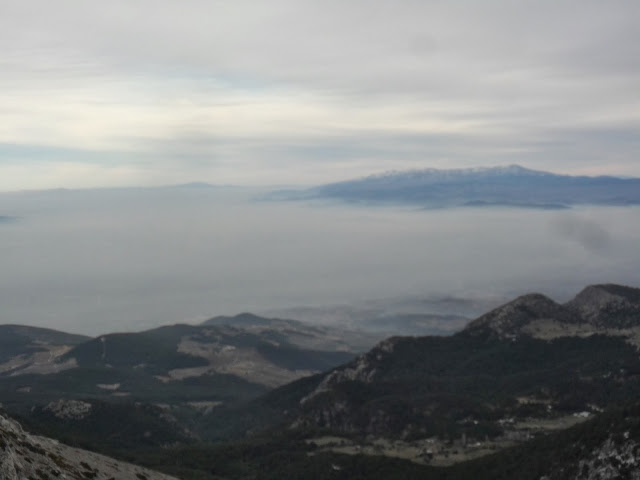 Hemen altımızda Kemalpaşa ovası sisler içinde kalmışken birinci resimdeki Mahmut Dağı İle ikinci resimdeki Nif Dağı sisin üzerinden tüm güzelliklerini sergiliyor.