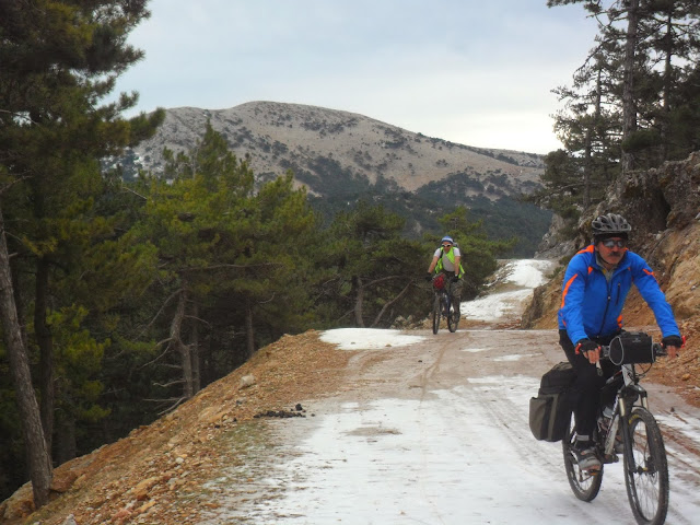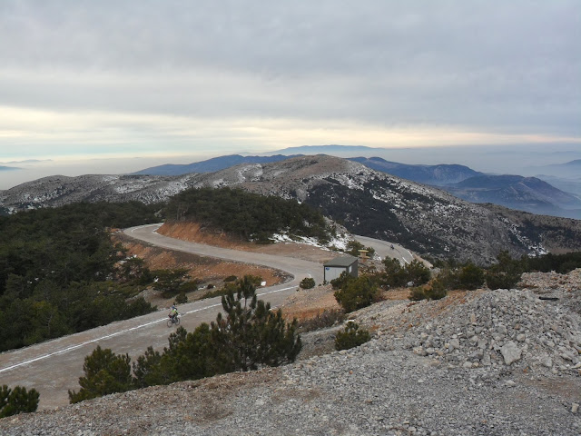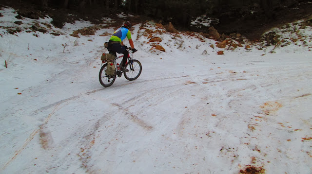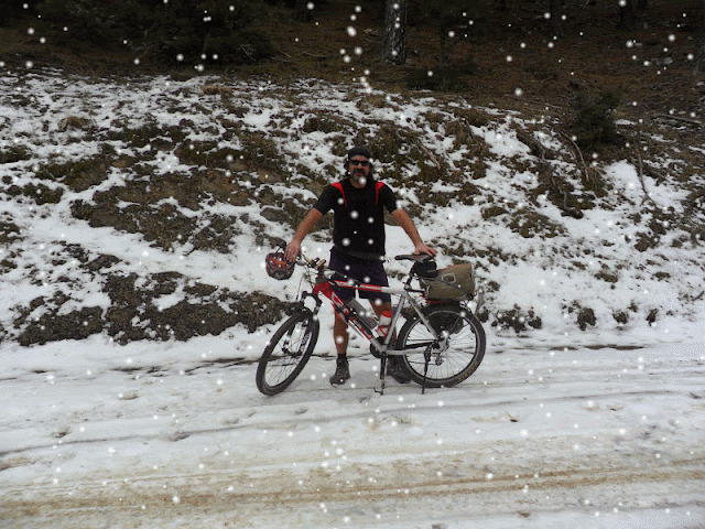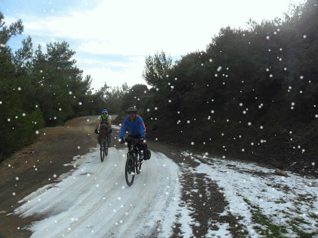 Buna buzda yolculuk demeli…. Yangın havuzunu geçtikten sonra ilk tırmanış noktasında buz tutmuş yol ile karşılaştık.Biraz patinaj,biraz geriye kayma, kazasız belasız bu virajlı ve buzlu alanı geçtik. Her ne kadar da olumsuz koşullar olsa da muhteşem bir gün yaşıyoruz.