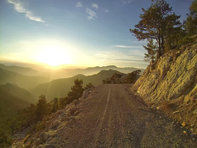 Bir noktada Ozan Yılmaz bisikleti ile pusuya yatmış, ben geçerken fotoğraf karesine Mahmut Dağını, çıkış yolunu ve beni sığdırmış.
