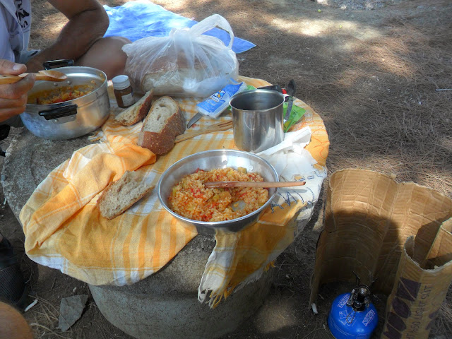güzel bir çeşme ve karnımız da çok acıkmış vaziyette.Yemeğimizi yerken,