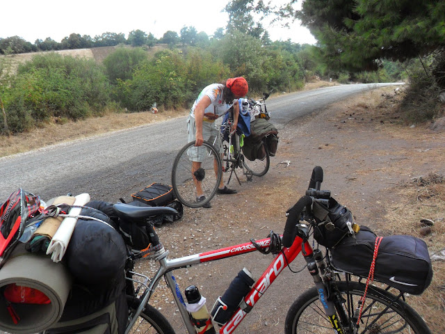 Balcılar köyünü geçtikten sonra lastik patlağı.Olacak o kadar,alışığız biz bunlara.