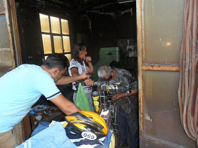 Bisiklet tamircisine gidiyoruz daha kapalı olduğundan Urim kendisi yapmaya başlıyor jant telini,her şey var yanında nasıl olsa, kara da ölüm yok ona.Ben de nasıl yapması gerektiği hakkında ufak tiyolar veriyorum!!!!!!!