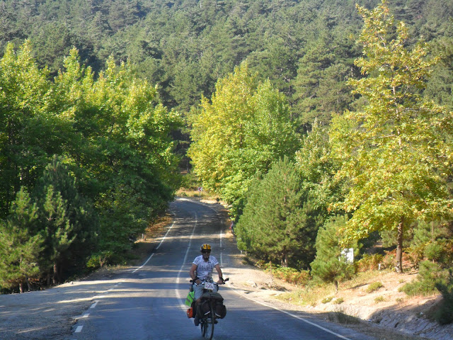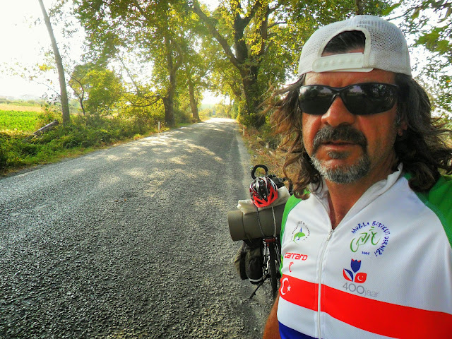 Ayvalık’tan güne başlamış, Küçükkuyu rampalarının kötü olduğunu izah edip alternatif rota sunduk,kendi bilir. Gömeç’e kadar beraber yolculuk yaptık biz mola verdik,çay teklif ettim,gitmesi gerekiyormuş,4 gün içinde Türkiye’ yi terk etmeliymiş,şayet çay teklifimi kabul etseydi zincirini yağlayacaktım, zinciri çok kötü ötüyordu.