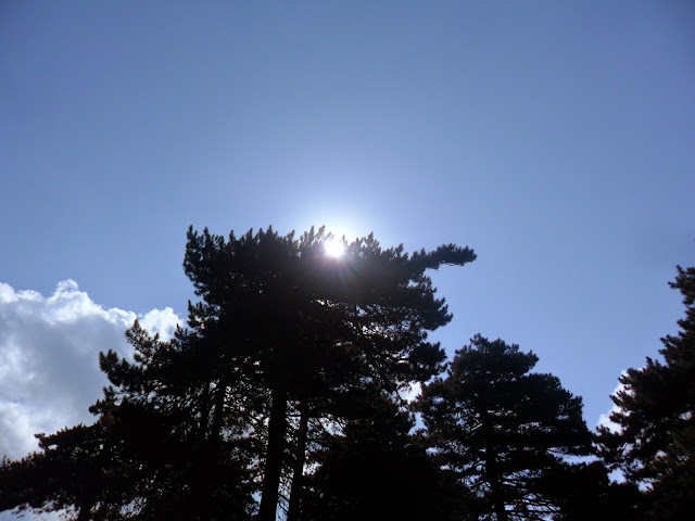 Kazdağlarında güneş ağaçların arkasında.