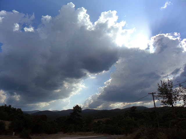Hava iyice bulutlanmaya başladı,500 metre geride benzinlik var,tam önüne geldiğimiz de sağanak yağmura yakalandık,benzin istasyonuna zor sığındık,kısa sürdü bizde yola çıktık hemen.
