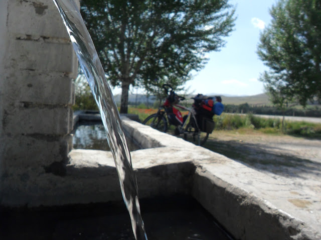 Madenli köyüne yakın bir yerde çeşme ve hayat suyu.Kısa mola beni kendime getirir dedim ve suya daldım, ilaç niyetineydi.Bu çeşmeye girmeden bir kaç km geride biri araba ile önümü kesti kısa bir muhabbet ettik.Kendisi Isparta’ lı bisiklet severmiş.Adı Yaşar Kemal’ miş. Tanıştık kendisi ile memnun oldum.Nazik daveti vardı ama ben yolcuyum dedim,başka zaman.