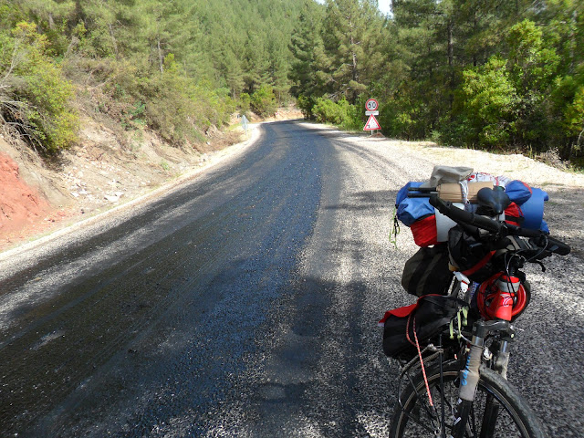Yola yeni asfalt ve mıcır dökülmüş daha 100 metre gitmeden yapıştım kaldım,kenara kaçsan mıcıra dalıyorsun,ortaya gelsen ziftleniyorsun.
