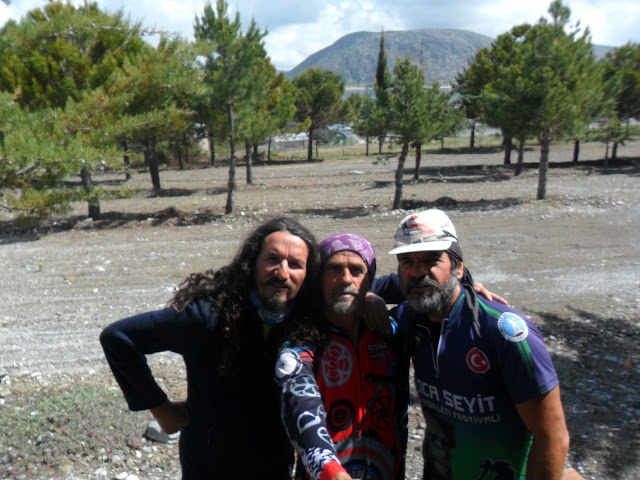 Farklı rotalardan gelip,hepimiz Salda Gölünde buluştuk.Yine yollar ayrılacak,herkes kafasındakini gerçekleştirecek.Bazı anlar vardık ki fotoğraflar da unutulmaz olur, bu öyle bir şey işte!!! Bizde buluşmamızın pozunu veriyoruz. İrfan ve ben farklı yerlerden gelmiştik,yine farklı yerlere gideceğiz. Urim ve Ferdi’ yi burada bırakacağız,onlar festivale katılacak.İrfan hazırlandı, vedalaştı ve yola çıktı. İrfan’ ın istikameti Başmakçı olacak. Ferdi ve Urim kamp yerine iki gün önceden geldiklerinden ve yağmur dolayısıyla çadırların etrafını güzelce istihkam yapmışlar.Bu kadar yağmurda başka türlü korunulmaz zaten.