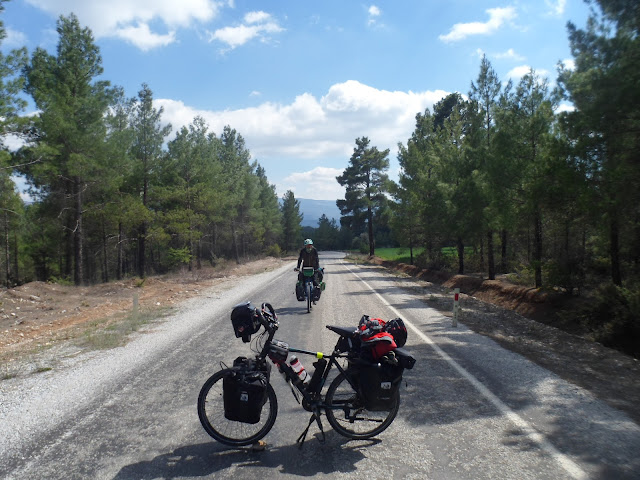 Bisikletlerin yanına gelince yanımıza biri geldi adı Süleyman’mış,köyün çobanıymış,bu yolları ve dağı çok iyi bilirmiş.Bize belli yere kadar kılavuzluk yapmak istediğini söyledi,baştan kabul etmedik ama ısrarcı olunca kabul ettik.Çünkü çizilene göre bir kaç kritik nokta var onları atlatmamıza yardımcı olacak.Çıktık yola biz bisiklet tepesinde, o yaya, ama tazı gibi maşallah, girdik çam ormanının içine Bozdağ derinliklerine tırmanmaya başladık.