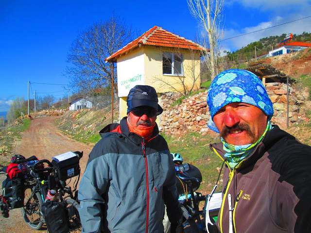 Sabaha karşı mescitin içi biraz soğudu ama biz buna razıyız.Sabah kahvaltımızı mescit içinde yaptıktan sonra çantalarımızı elden ele vererek bisikletlerin yanına indirdik.Benim görevim mescitten en son çıkmak ve etrafı bulduğumuzdan daha iyi durum da bırakmaktı, o işleri yaptım,Ferdi’nin görevi çantaları taşımak ve ayarlamaktı,oda işini tam yaptı. Dünkü fırtına hızını kesmemiş, aynı durumda ve biz bugün fırtınaya karşı yol alacağız.