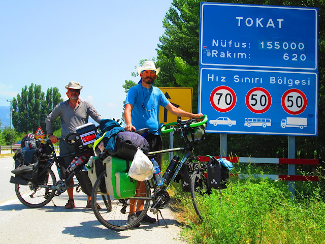 Turhal-Tokat arası 46 km,yükselti olmayıp, rüzgarda arkadan ittirince öğleden önce Tokat levhasının önünde bulduk kendimizi.Artık Tokat’tayız ve birazdan Tokat gezimiz başlayacak.