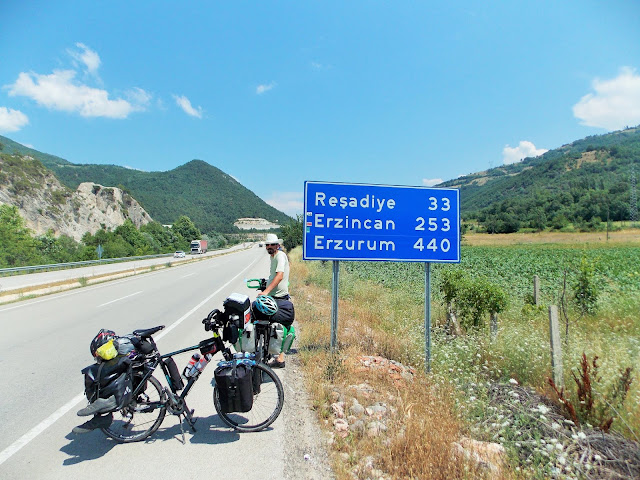 Kilometreleri hızla almaya başladık. Stickerlerimiz de kilometre levhalarındaki yerlerini aldı. Kelkit Vadisinin bu bölümünde çok sayıda HES var. Hes’ler maalesef Kelkit Çayının doğal görüntüsünü yok etmiş o yüzden fotoğrafları buraya koymayı uygun görmedim. Ama bazı vadi boşluklarında bir çok çeşme mevcut,hemen hemen hepsinde durup susuzluğumuzu giderdik.Reşadiye levhaları yol hikayemizi biraz olsun anlatmaya yeter.