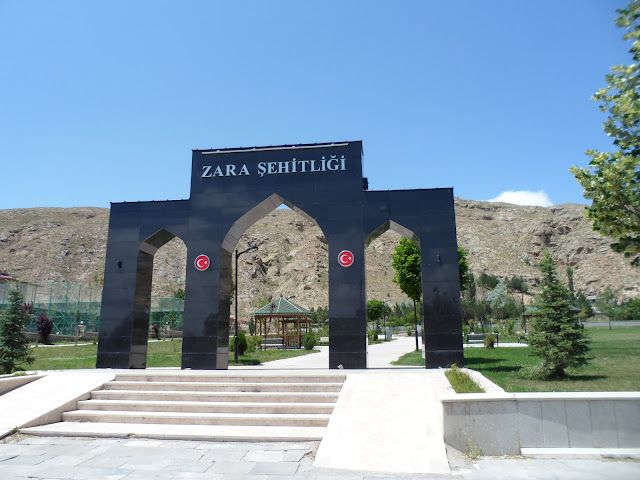 Zara’ya yukarıdan dağ yolundan giriş yaptığımızdan tabelayı ancak ilçe çıkışında fotoğraflayabildik.Öğle yemeğimizi Zara’da yedik,Zara Kültürel turu yaptık,Zara Şehitliği’ ni de ziyaret ettik şimdi yola çıkmaya, bir sonraki hedefimiz olan Hafik’ e varmak için yola revan olmak lazım.Önümüzde 30 kilometrelik bir rüzgarlı yol var.