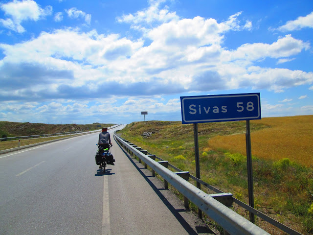 Tödürge Gölünden sonra 17 kilometre bu manzaraların güzelliği olmasa bitmezdi!!!!! sebebi aşırı rüzgar.Kafadan aldığımız rüzgara meydan okuyarak Hafik ilçesine doğru yol aldık ve bir süre sonra Hafik göründü.