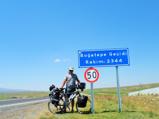 Her tırmanışın bir ödülü vardır,benim de ödülüm bu…. Susuzdan ayrılalı 25 kilometre oldu,Boğatepe Geçidine vardım ve hatıra fotoğrafımı çektim. Geçitler albümüme Boğatepe Geçidini de eklemiş oldum.Boğatepe Geçidi adını hemen 5 kilometre yakınındaki Boğatepe köyünden almakta ve Kars-Göle yolu üzerine bulunmaktadır.