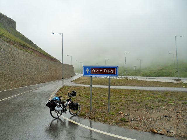 Ovit Dağı tırmanışımda 2300 metrelere kadar yağmurla geldim,şimdi 2640 metrede ve fırtına ile boğuşuyorum.Vatandaşların arabaları ile gelip tabela önünde fotoğraf çektirdiği geçitte ben tabelanın birini işgal ettim, kimseye bırakmam. Kolay değil 35 kilometre tırmanmanın mükafatı bu fotoğraflar.Üşüyorum,fırtına savuruyor ama mutluyum.