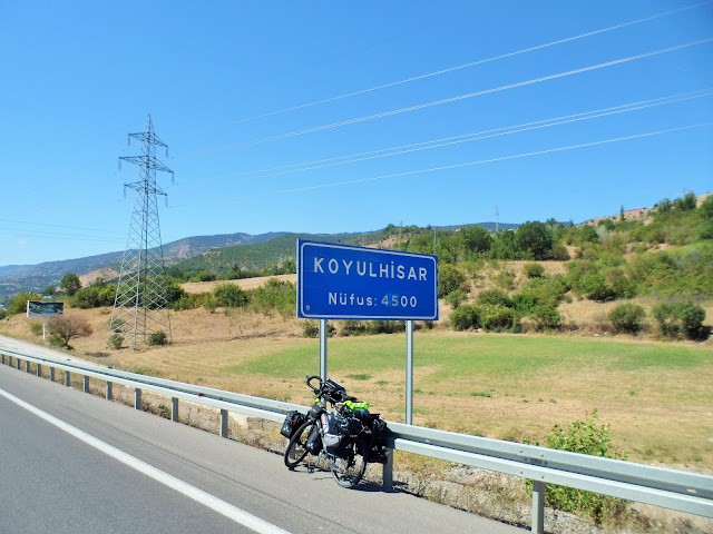 Koyulhisar Sivas’ın küçük ilçelerinden biri.Yoldan 3 kilometre içeride ve tepede, yol ayrımı 650 rakıma sahipken Koyulhisar 950 rakımda.Dik bir şekilde çıkıldığından ve günün yorgunluğundan bisikletimi ittirerek ilçe merkezine girdim,girerken de