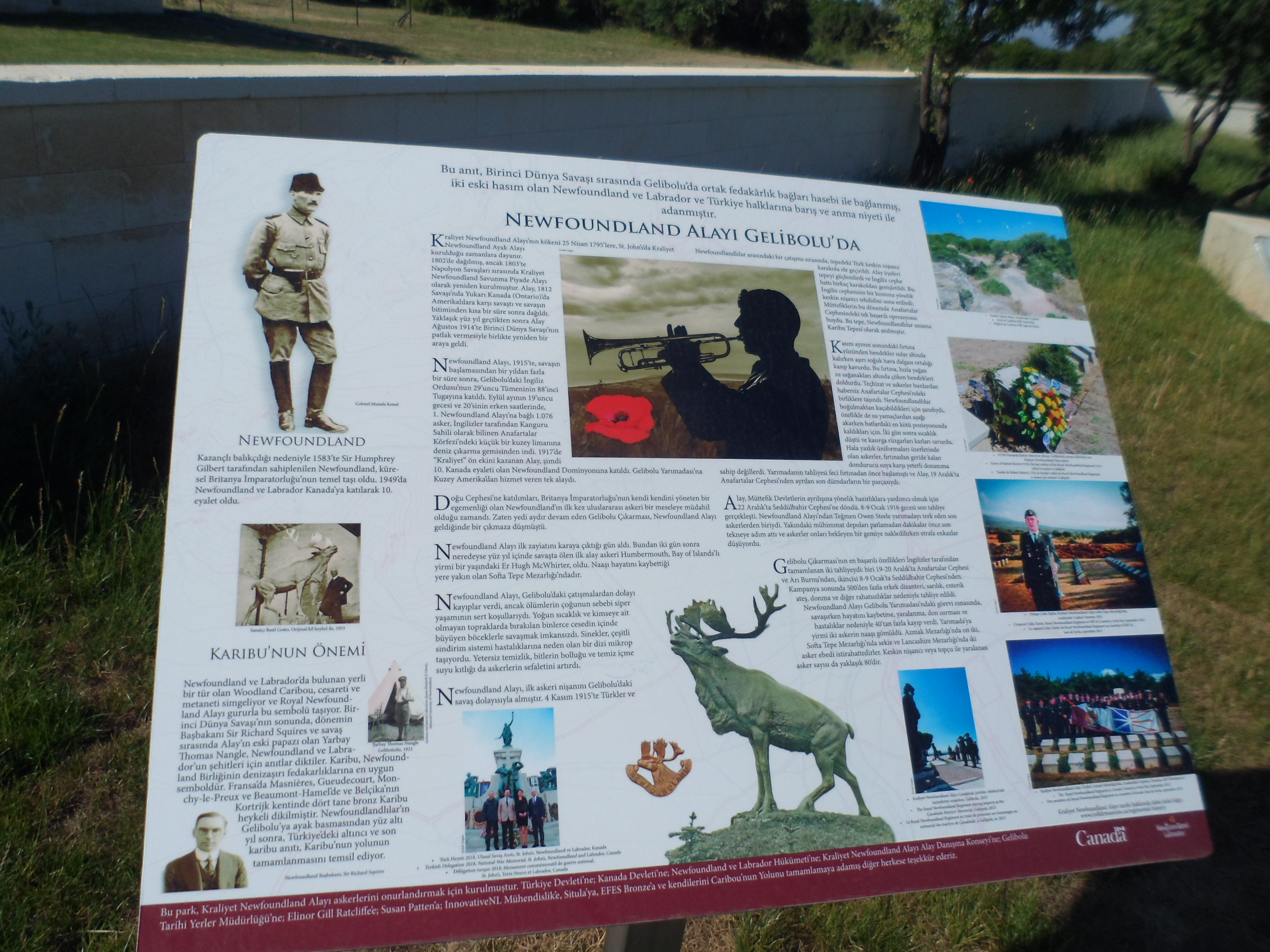 Büyük Kemikli Burnu’na giderken yolun sol tarafında, yoldan 100 metre içerisinde bir geyik heykeli gördük,merak ettik,bakmak için içeri girdik.Newfoundland Alayı’nın simgesiymiş,hangi ülkemi? Kanada imiş.Tüm dünya ülkeleri Gelibolu’ya Türk’ü sınamaya,yurduna musallat olmaya gelmiş,gelmiş ama boylarının ölçüsünü alıp,gitmişler.