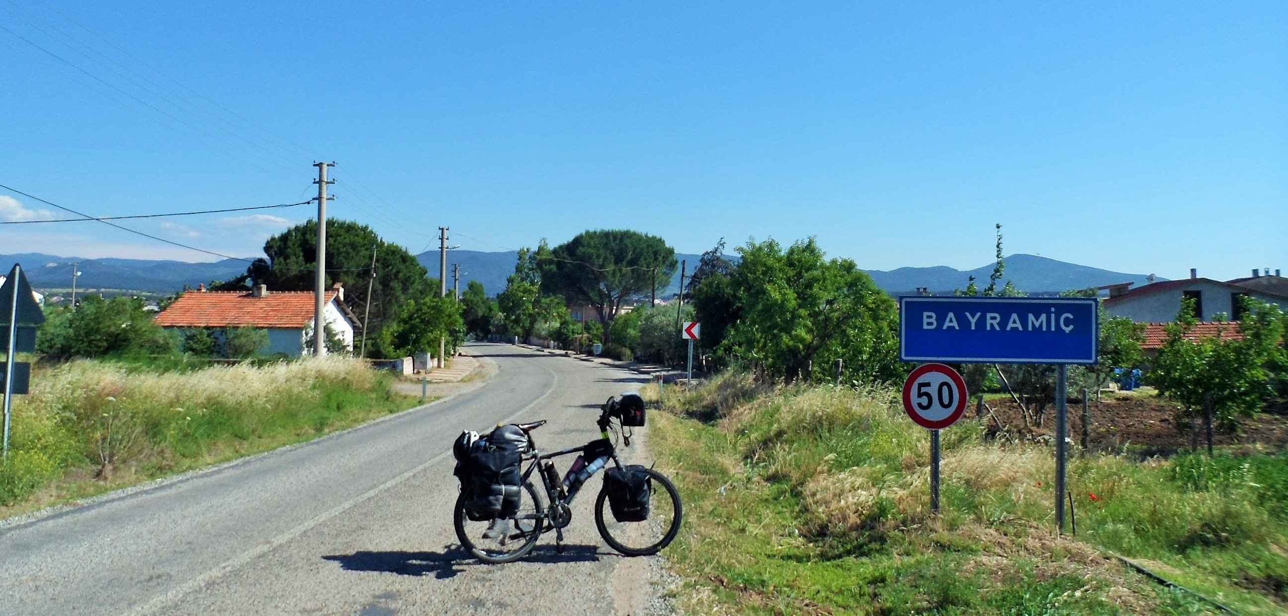 Yiğitler’den sonra Kursaklı Çayı üzerinden geçerek etrafı dağ ve tepelerle kaplı Bayramiç’ e giriş yaptım.İlçenin en önemli dağı Kazdağları’dır,