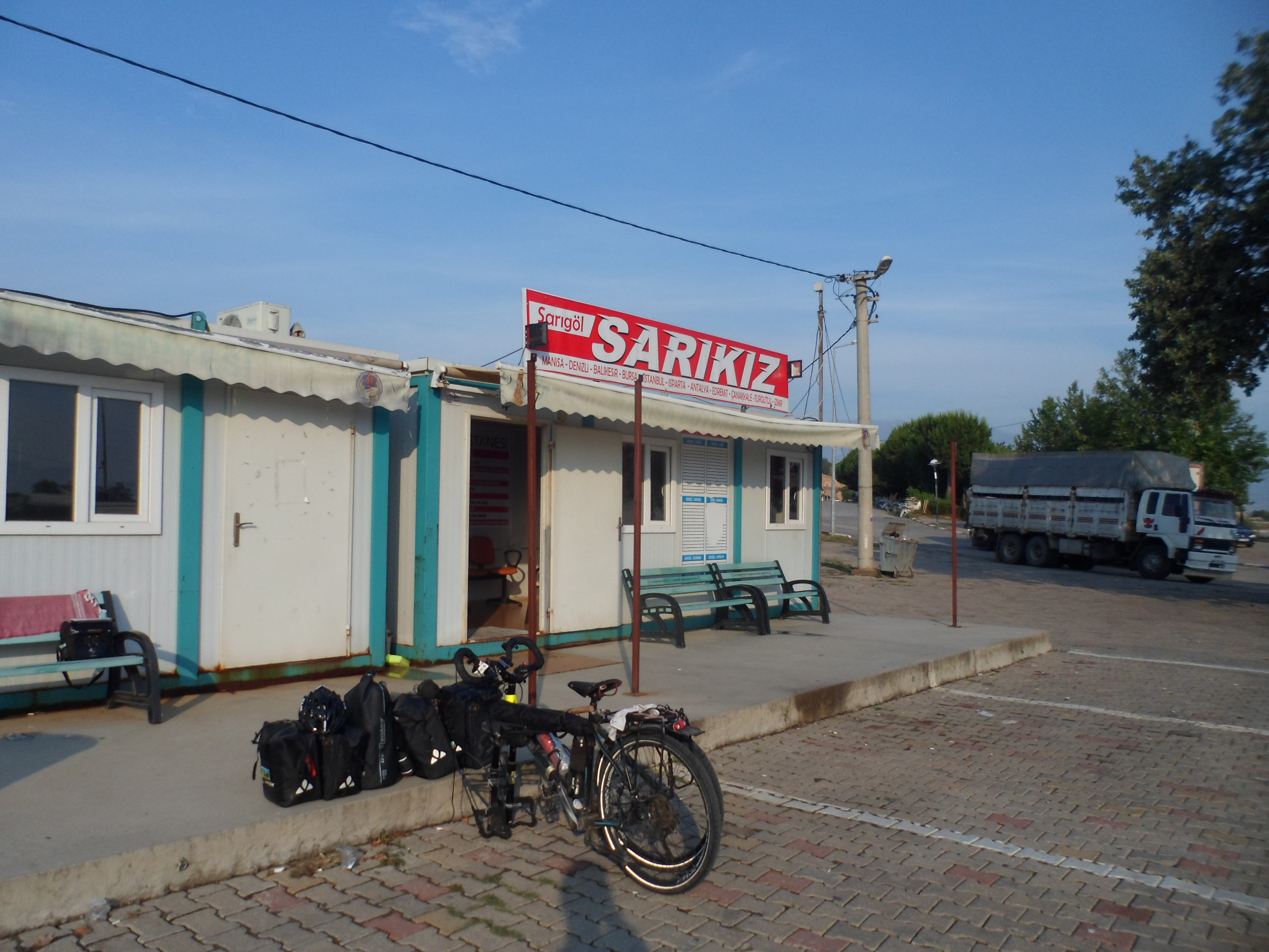 Sabah erken kalkıp yola çıktım,kamp yaptığım yer ile Sarıgöl arası 12 kilometre kadar,iniş ağırlıklı olduğu için çabuk Sarıgöl’e geldim.Saat 10:00’da  Çanakkale yönüne otobüs var ona bineceğim.